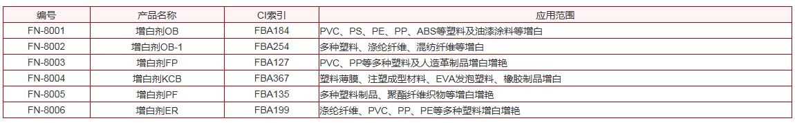 該類(lèi)熒光增白劑,適用于造紙、洗滌劑、塑料、涂料、化纖等行業(yè)的增白增艷。